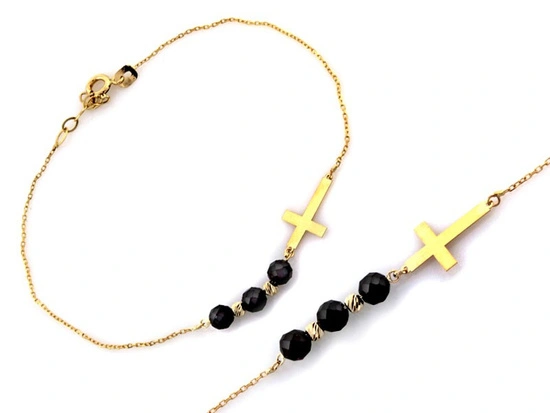 Bransoletka złota z krzyżykiem i czarnymi kamieniami