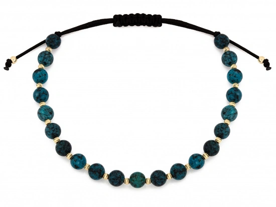 - Materiał: żółte złotoKamienie: syntetyczne, z wieloma kamieniamiKategoria: na sznurku, z kulkamiKolory: z niebieskim, z czarnymZapięcia: z regulacjąPowierzchnia: błyszczącaUwagi dodatkowe: Kulki z kamieni syntetycznych mogą nieznacznie różnić się koloryst