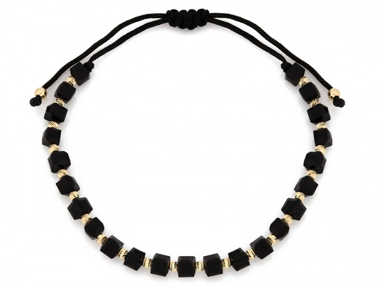 Bransoletka złota czarna sznurkowa ze złotych kulek i czarnych kostek