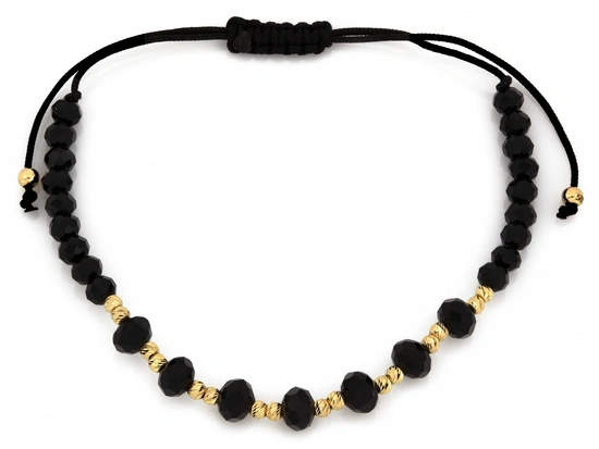 Bransoletka złote kulki i czarne onyksy na czarnym sznurku