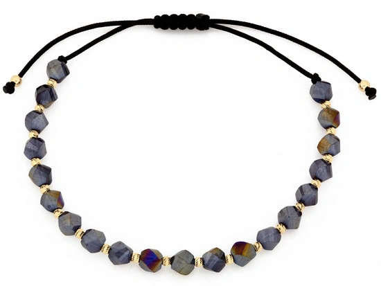 Bransoletka złota sznurkowa kolorowe kamienie i złote kuleczki