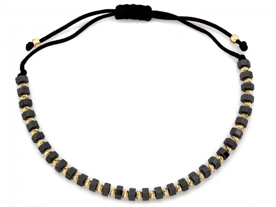 Bransoletka złote kulki i hematyty na czarnym sznurku