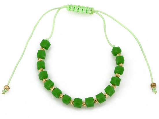 Zielona bransoletka sznurkowa ze złotymi kulkami