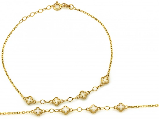Bransoletka złota łańcuszkowa małe kwiatki z masą perłową
