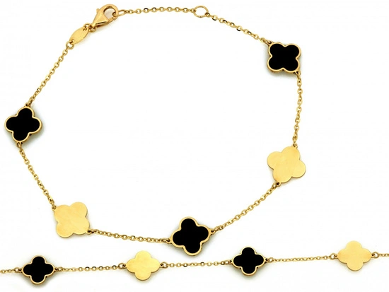 Bransoletka złota łańcuszkowa z kwiatkami z czarną emalią