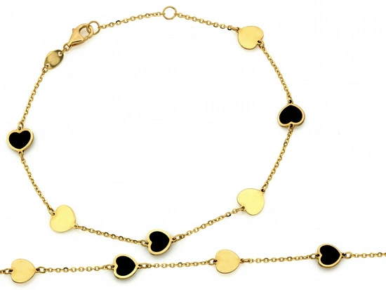 Bransoletka złota z sercami z czarną emalią