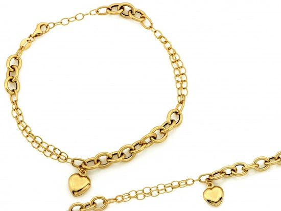 - Materiał: żółte złotoKamienie: bez kamieniKategoria: miłość, z zawieszkami, symbolMotyw: serceWzór: łańcuszkowy, elementoweZapięcia: z regulacjąPowierzchnia: błyszczącaUwagi dodatkowe: szerokość bransoletki bez zawieszki:5.9mm szer. zawieszki:8,2mm