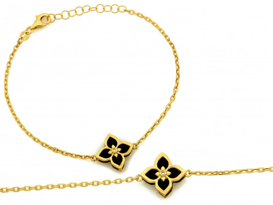 Bransoletka złota z kwiatkiem z onyksami