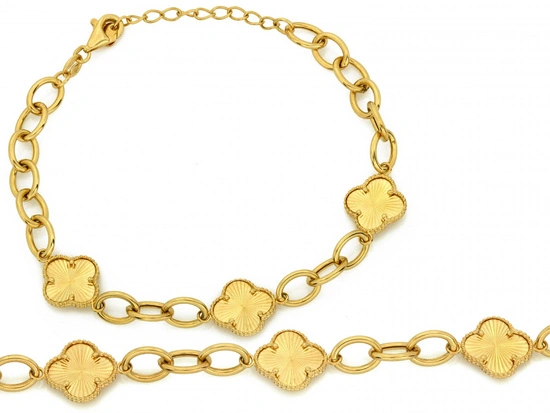 Gruba złota bransoletka duże ogniwa modne kwiaty frezowane