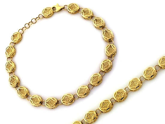 - Złota bransoletka o ponadczasowym kształcie, która będzie pięknym dodatkiem dla każdej Pani lub Pana. Nasze surowe normy kontrolne oraz 20 letni staż w branży jubilerskiej gwarantuje Państwu zakup biżuterii najwyższ