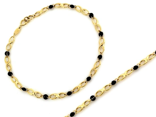 Złota bransoletka z nieskończoności z czarnymi kamieniami