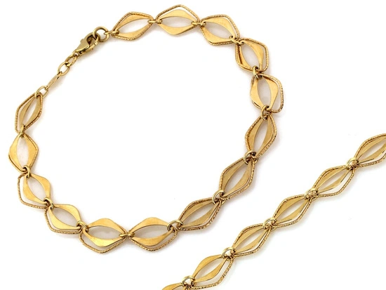 - Złota bransoletka o ponadczasowym kształcie, która będzie pięknym dodatkiem dla każdej Pani lub Pana. Nasze surowe normy kontrolne oraz 20 letni staż w branży jubilerskiej gwarantuje Państwu zakup biżuterii najwyższ