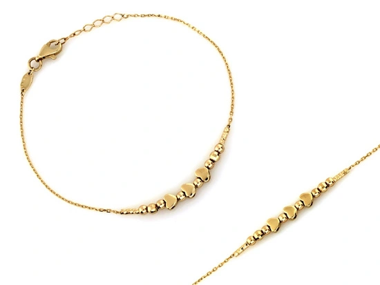 Bransoletka złota łańcuszkowa z kulkami i sercami