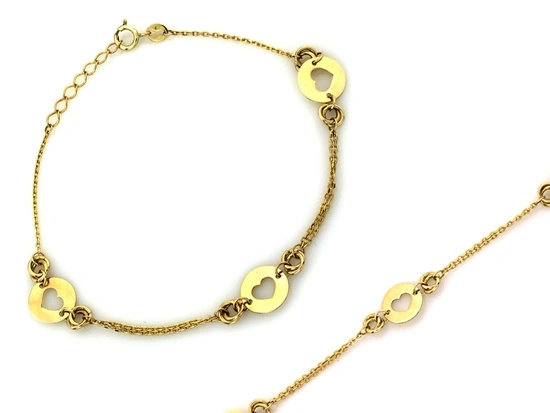 Złota bransoletka z łańcuszków ozdoby z wycinanymi sercami