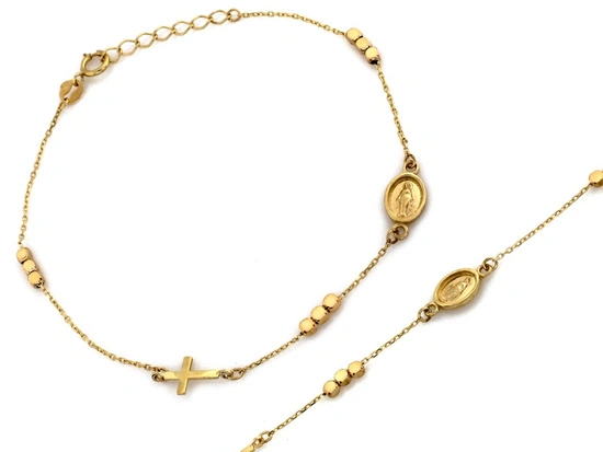 Złota bransoletka łańcuszkowa z krzyżykiem medalikiem