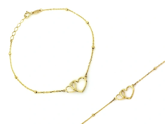 Bransoletka złota łańcuszkowa dwa serca kulkami