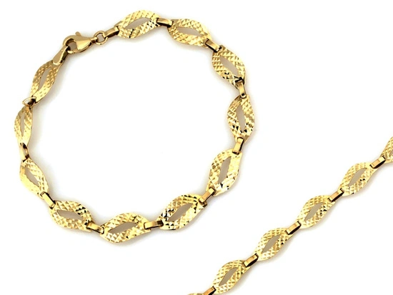 - Złota bransoletka o ponadczasowym kształcie, która będzie pięknym dodatkiem dla każdej Pani lub Pana. Nasze surowe normy kontrolne oraz 20 letni staż w branży jubilerskiej gwarantuje Państwu zakup biżuterii najwyższ