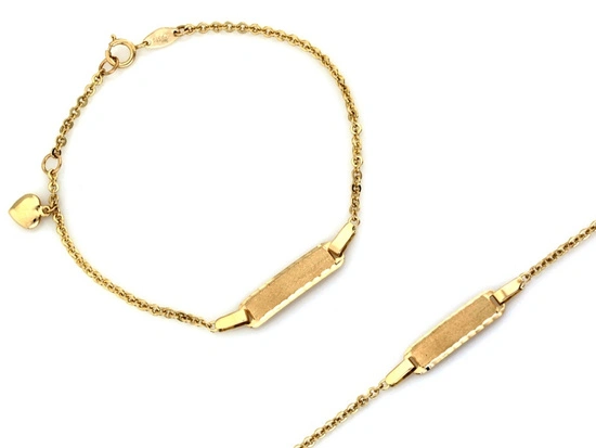 Złota bransoletka dla dziecka z blaszką pod grawer i serduszkiem