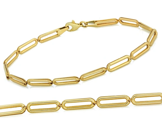 - Złota bransoletka o ponadczasowym kształcie, która będzie pięknym dodatkiem dla każdej Pani lub Pana. Nasze surowe normy kontrolne oraz 20 letni staż w branży jubilerskiej gwarantuje Państwu zakup biżuterii najwyższ