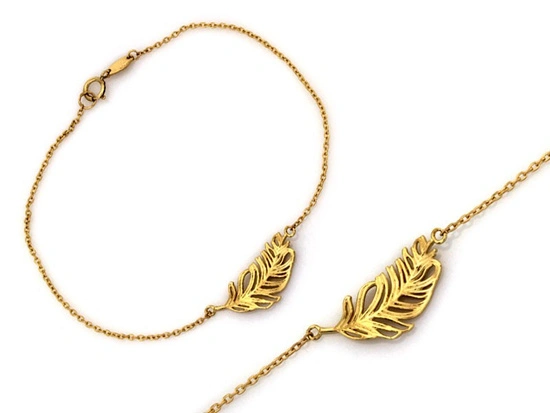 Złota bransoletka piórko