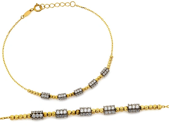 Bransoletka złota z diamentowanymi kulkami i cyrkoniami