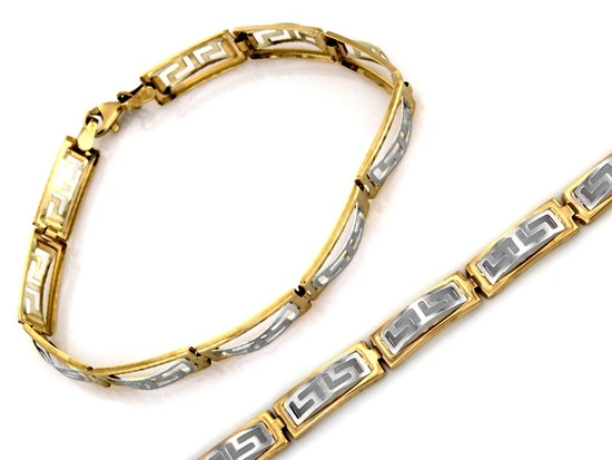 - Szerokość: 6.6mmMateriał: żółte i białe złotoKamienie: bez kamieniWzór: elementowe, greckiPowierzchnia: błyszcząca, rodowana