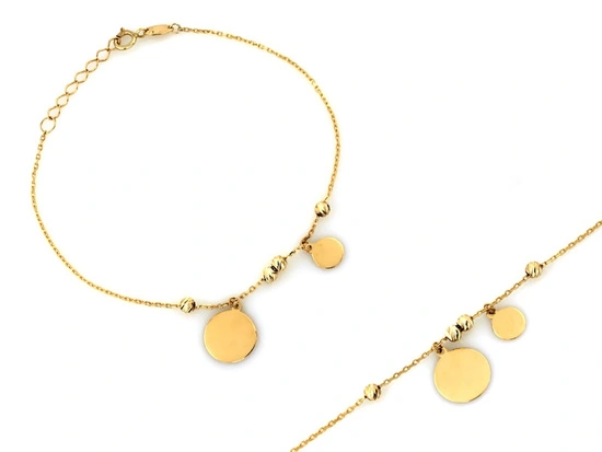 Bransoletka złota łańcuszek z kulkami i wiszącymi blaszkami
