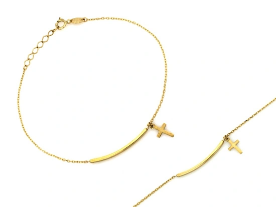 Bransoletka złota łańcuszkowa ze sztywną wstawką i krzyżykiem