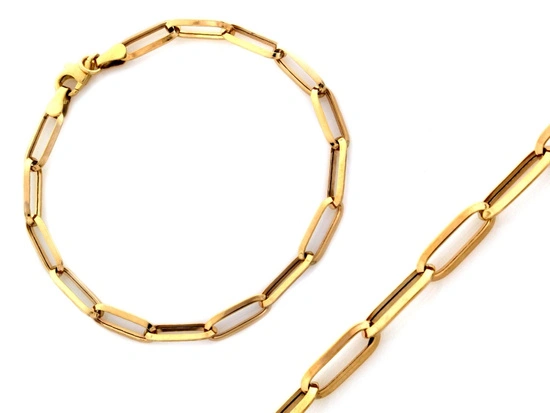 • Złota bransoletka o ponadczasowym kształcie, która będzie pięknym dodatkiem dla każdej Pani lub Pana. Nasze surowe normy kontrolne oraz 20 letni staż w branży jubilerskiej gwarantuje Państwu zakup biżuterii najwyższ