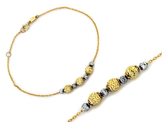 Bransoletka złota z dwukolorowymi kulkami