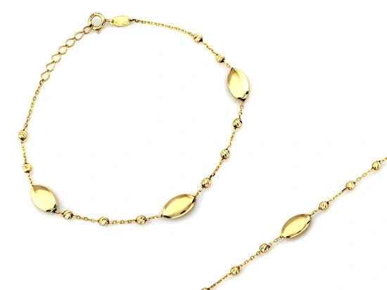 Złota bransoletka łańcuszkowa z kulkami i owalnymi ozdobami