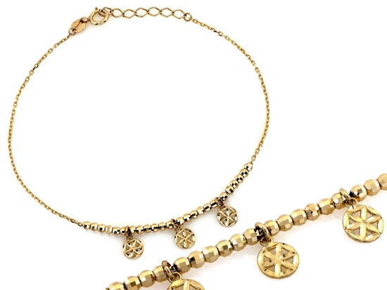 Bransoletka złota łańcuszek z kuleczkami i zawieszkami