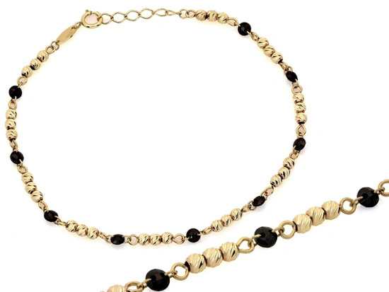 Bransoletka złota z kulkami i czarnymi kamieniami