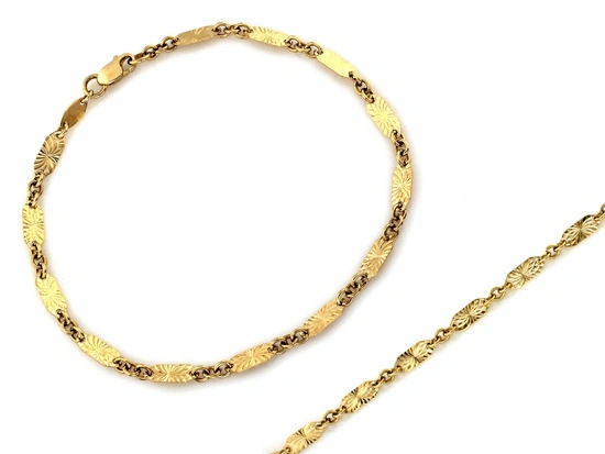 Złota bransoletka próby 375 to elegancki i ponadczasowy dodatek, który pięknie podkreśla każdą stylizację. Wykonana z wysokiej jakości złota, zachwyca trwałością, subtelnym blaskiem i starannym wykończeniem. Jej klasyczny charakter sprawia, że doskonale sprawdzi się zarówno na co dzień, jak i podczas wyjątkowych okazji. To uniwersalna ozdoba oraz idealny pomysł na prezent.