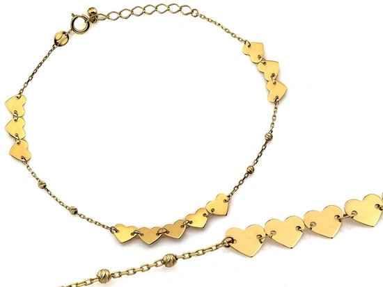 Złota bransoletka z sercami z kuleczkami