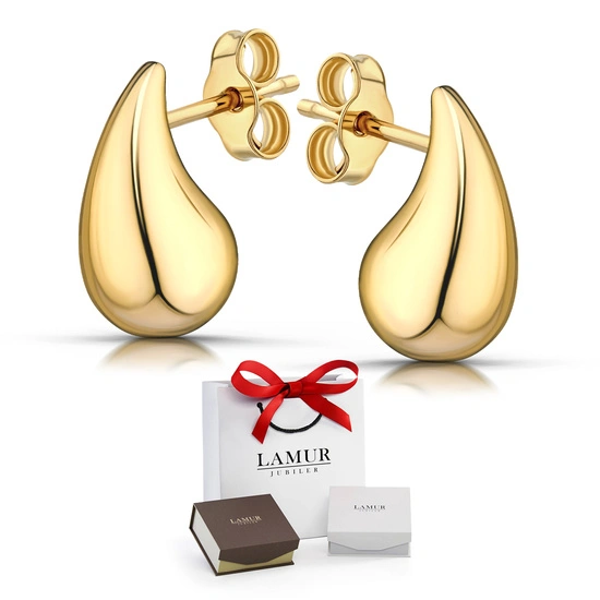 Złote kolczyki próby 375 w formie pełnych, opływowych kropli to biżuteria, która łączy w sobie minimalizm i efektowność. Ich gładka, lustrzana powierzchnia pięknie odbija światło, tworząc subtelny, a zarazem wyrazisty akcent w każdej stylizacji. To nowoczesna interpretacja klasycznej formy, idealna dla kobiet poszukujących biżuterii z charakterem.