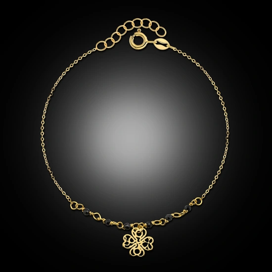 Złota bransoletka 585 ażurowa koniczynka z kulkami z onyksu
