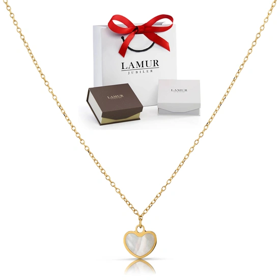 Złoty naszyjnik 585 - serce z masą perłową