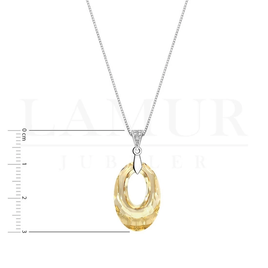 Oferowany Państwu naszyjnik został wykonany z najwyższej jakości rodowanego* srebra próby 925. Jego atrakcyjny i ciekawy wygląd ozdobiony kryształem od SWAROVSKI®, to doskonały wybór dla osób szukających sprawdzonych i zarazem uniwersalnych kompozycji. W połączeniu z diamentowymi cyrkoniami* będzie idealnym prezentem dla Pań lubiących oryginalne i ponadczasowe wzory.