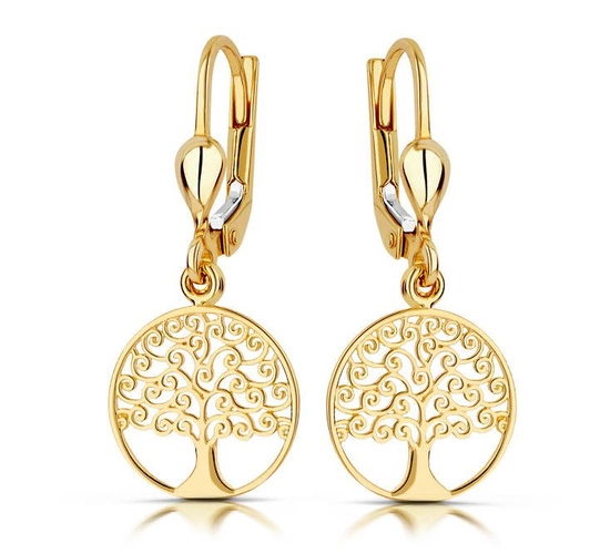 Złote kolczyki 375 drzewka - wiszące