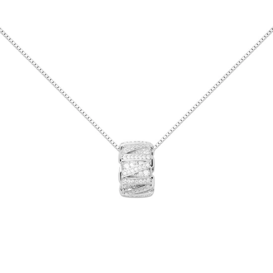 Oferowany Państwu naszyjnik został wykonany z najwyższej jakości rodowanego* srebra próby 925. Niewątpliwie jego największym atutem są diamentowe cyrkonie* w zawieszce oraz fantazyjny i ponadczasowy motyw. Kompozycję naszyjnika zamyka pięknie błyszczący i efektowny łańcuszek w splocie weneckim. W połączeniu z wysoką jakością wykonania otrzymują Państwo naszyjnik o czarującym i przykuwającym oko wyglądzie.