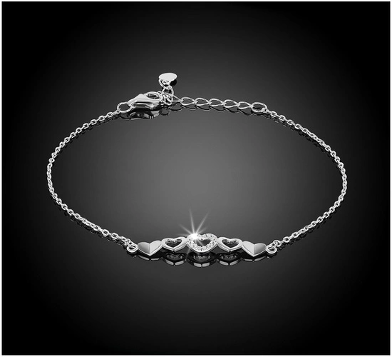 Bransoletka srebrna 925 z diamentowymi cyrkoniami - serca