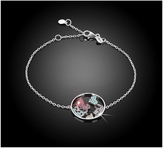 Bransoletka srebrna 925 z diamentowymi cyrkoniami - mapa świata