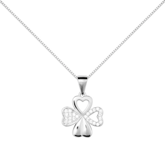 Zawieszka srebrna z diamentowymi cyrkoniami - koniczynka, serce