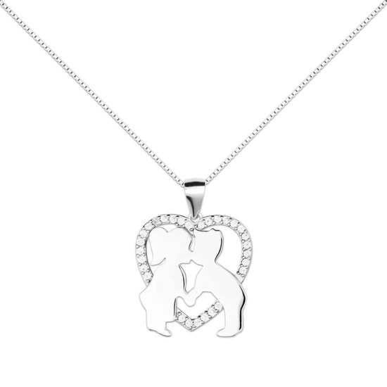 Zawieszka srebrna z diamentowymi cyrkoniami - serce, miłość, przyjaźń