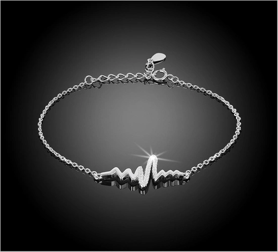 Bransoletka srebrna 925 z diamentowymi cyrkoniami - bicie serca