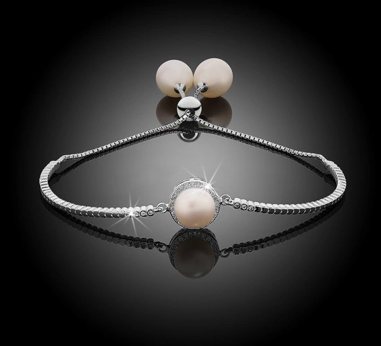 Oferowana Państwu bransoletka została wykonana z najwyższej jakości rodowanego* srebra próby 925. Jej głównym elementem są słodkowodne perły oraz diamentowe cyrkonie*. W połączeniu z najwyższą jakością wykonania otrzymują Państwo biżuterię o wyjątkowych walorach wizualnych i estetycznych.