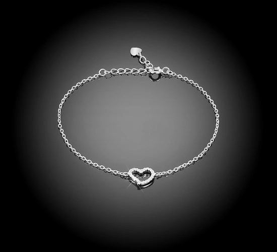 Bransoletka srebrna 925 z diamentowymi cyrkoniami - serce