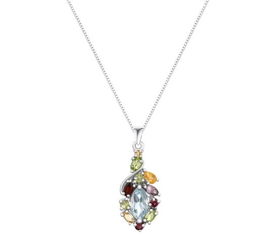 Naszyjnik srebrny 925 z naturalnym ametystem, 3 cytrynami, 3 granatami, 4 oliwinami i topazem