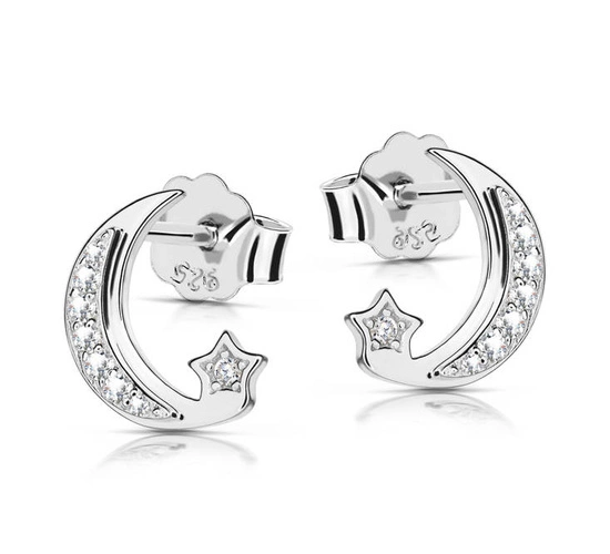 Srebrne kolczyki 925 z diamentowymi cyrkoniami - księżyc, gwiazdka